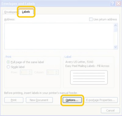 How to Print Avery Labels in Microsoft Word on PC or Mac It's at the top of Word. [1] 3 Click Labels on the toolbar. It's in the upper-left area of Word. This opens the Envelopes and Labels panel to the Labels tab. If you want to print labels from an existing mailing list, select Start Mail Merge instead, and then click Labels. 4 Click the Options button. It's at the bottom of the window.