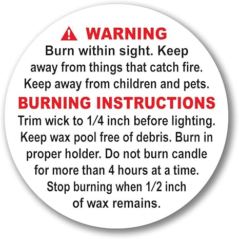 Superb Home 100 pcs 1.25” ASTM Compliant Candle Warning Labels Stickers Waterproof Scratchproof Official NCA Safety Alert Symbols Big Text Soy Wax ...