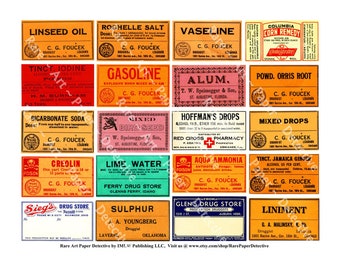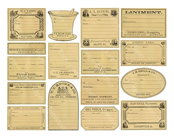 Medicine Labels, 16 Blank Apothecary Bottle Stickers, Pharmacy Tag, Halloween Potion & Witches Cauldron Jar Labels, Druggist Decals, 824